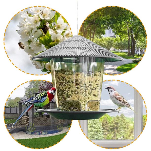 Das Panorama-Vogelfutterhaus bietet eine große Saatgutkapazität von 2,5 Pfund, die eine Vielzahl von Vogelsamen aufnehmen kann, und zieht Rotfinken, Meisen, Hausfinken, Vögel, blaue Vögel, Grasmücken, Stare und mehr an! Dieser elegante Futterautomat wird sicher viele Vögel in Ihren Garten locken und ist die perfekte Ergänzung zu Ihrer Außendekoration!